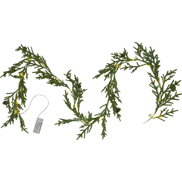 Com um generoso comprimento de 180 cm, esta peça é ideal para adornar prateleiras, lareiras, cabeceiras de cama, ou para emoldurar espelhos e janelas. A grinalda possui 20 lâmpadas LED de baixo consumo energético que emitem uma luz suave e agradável, transformando instantaneamente qualquer divisão num santuário de tranquilidade.